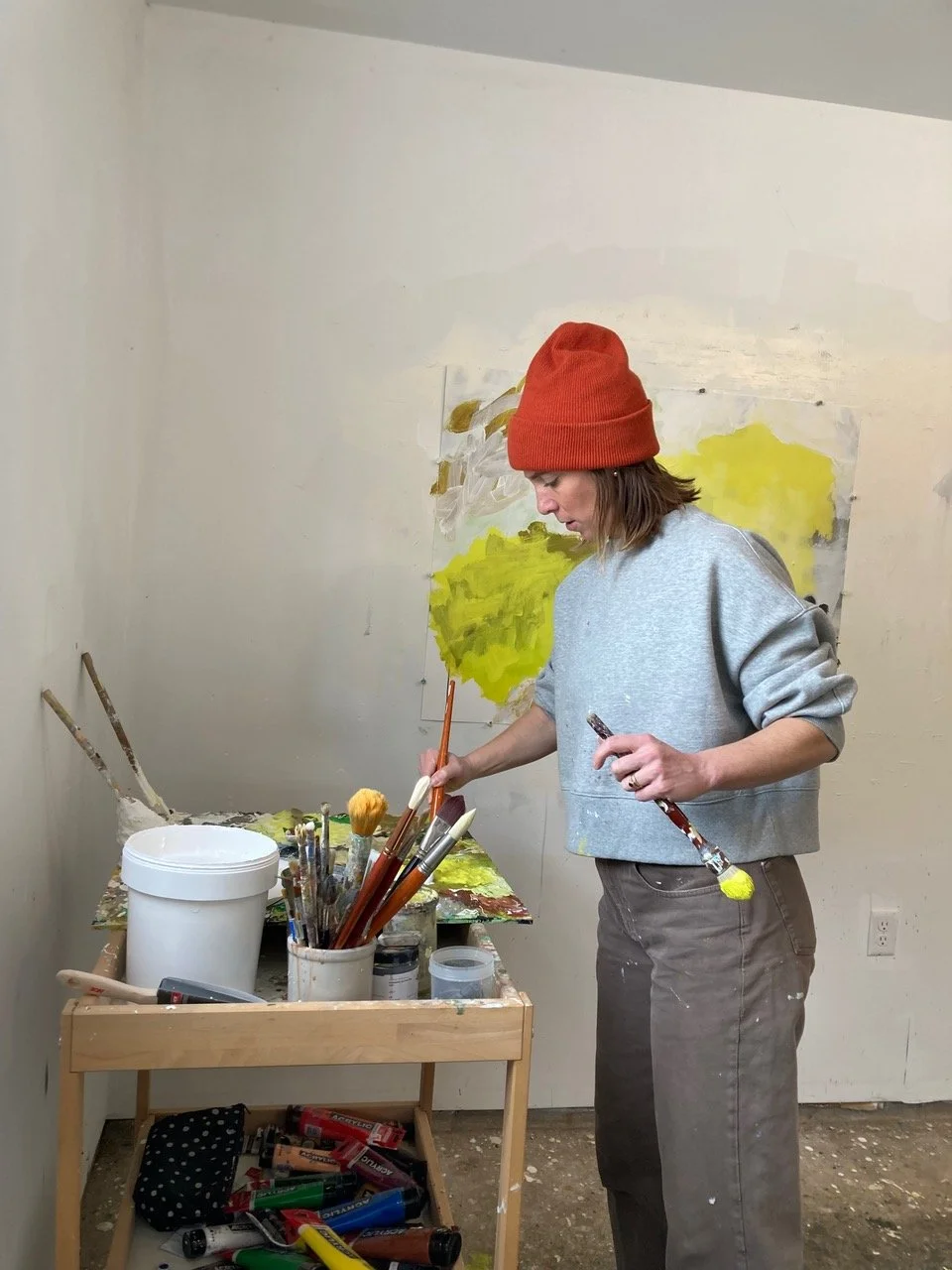 ”For me, abstract painting is putting form to subtle energies surrounding us. I think about seeds sprouting, the wind blowing, creative impulse, ocean tides, human connections, plants living under the snow. My work is connected to the continual evolution of the seasons. The exuberance of high summer, the hunt for vibrancy on a grey day, the freshness of spring. As I paint, I am tapped into what is happening in the natural world, as well as my internal instincts. I want my paintings to capture something that feels lively and energizes the viewer.